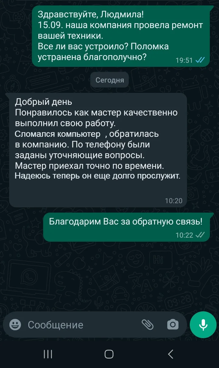 Мы уточним детали и согласуем удобное время для визита мастера